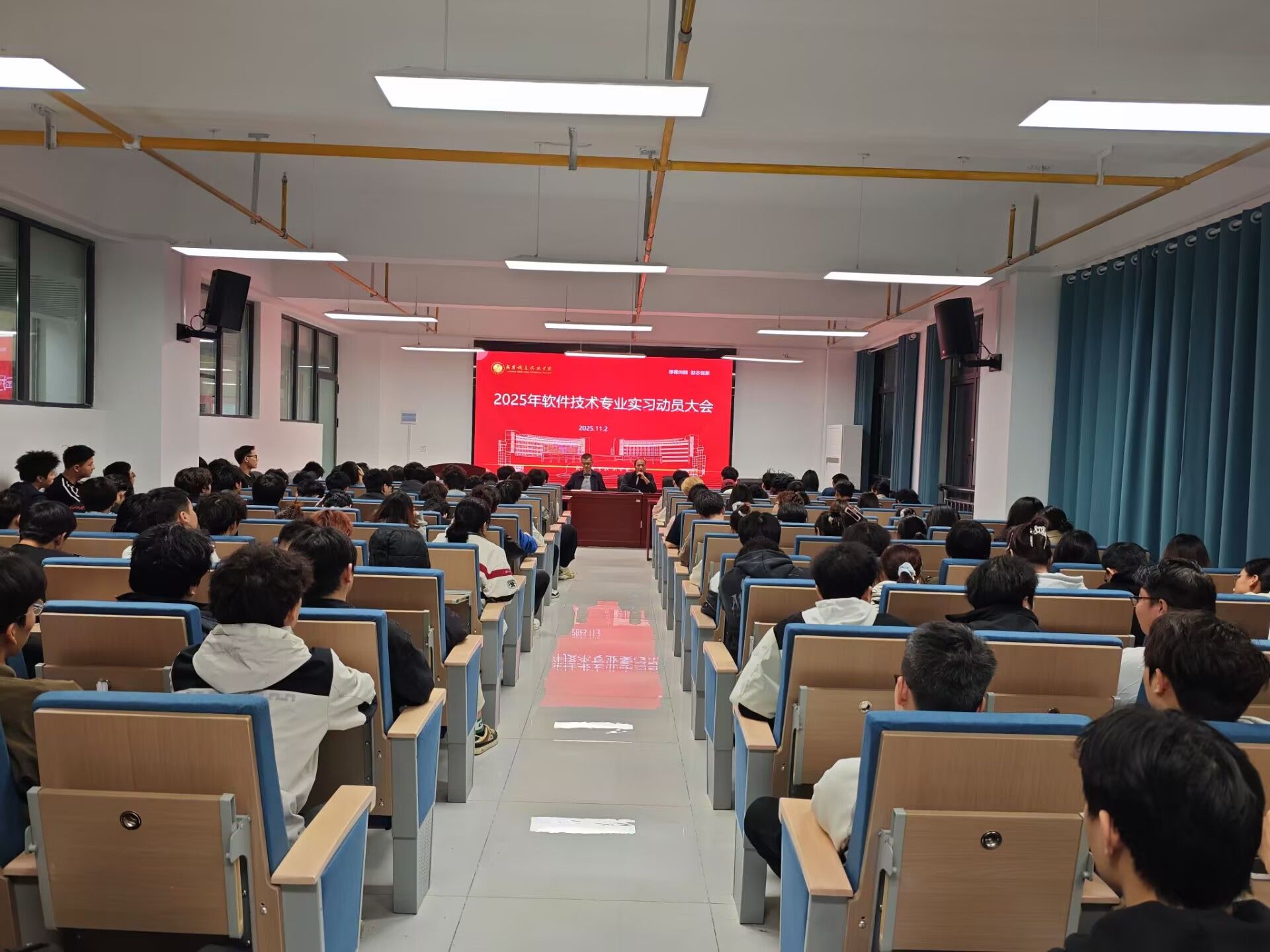 11月2日晚7点,威廉希尔软件技术专业在数字信息大楼多功能报告厅组织召开2023级学生顶岗实习动员大会。学院党总支书记张武洪、教学副院长尹光辉、学工副书记郑重、软件教研室全体教师、辅导员熊文文及软件技术专业143名学生共同参会。会议由软件教研室主任黄俊峰主持。