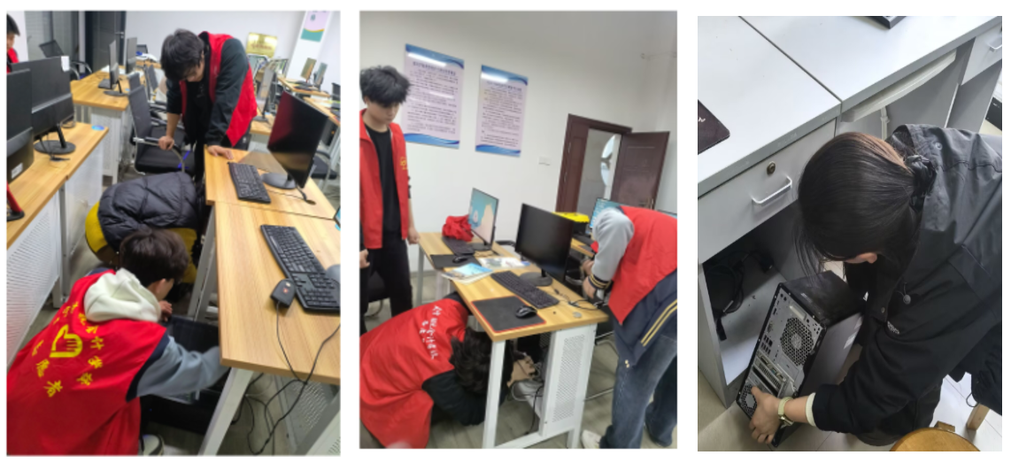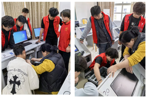 此次参与的志愿者中,既有经验丰富的“老队员”,也有本学期刚加入的新面孔。在祁老师的现场指导下,同学们将课堂所学《计算机组装与维护》等课程知识应用于真实场景,在“真刀真枪”的实战中提升技能、锤炼品格。