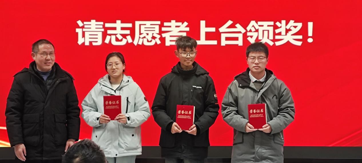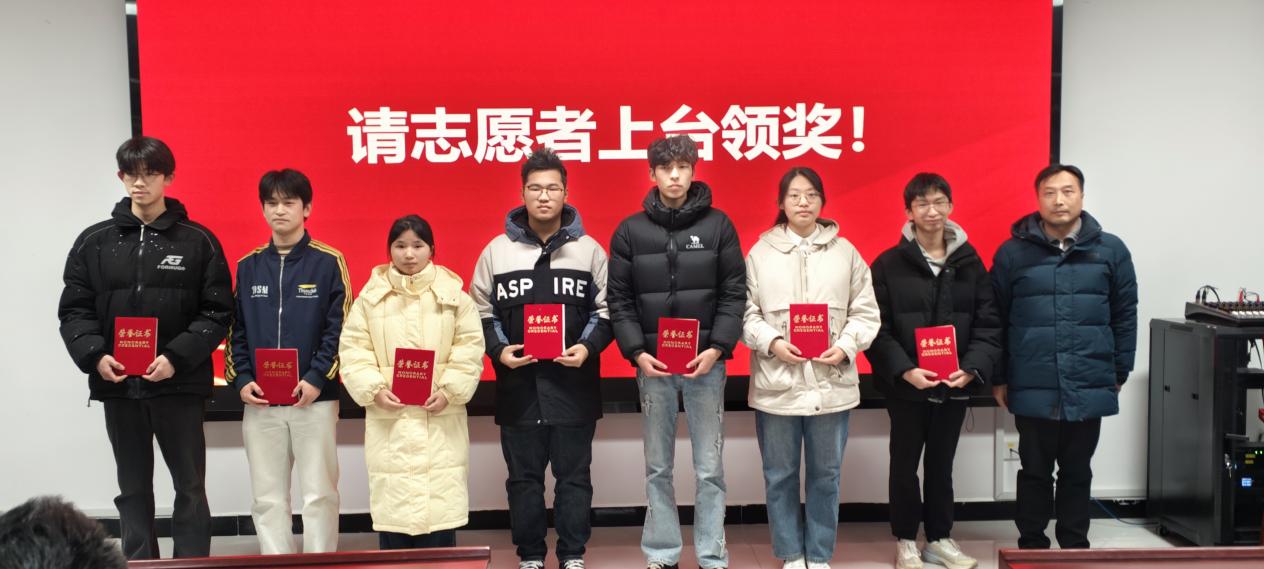 颁奖环节,胡文杰和尹光辉为16 名 24 级优秀志愿者颁发荣誉证书,汪涛为 3 名 25 级优秀志愿者颁发证书,表彰他们在电脑义诊活动中的突出贡献。