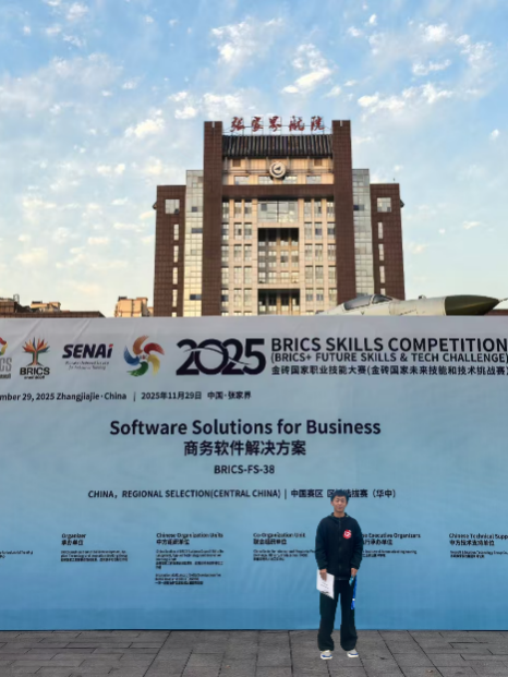 11月28日至29日,2025金砖国家职业技能大赛商务软件解决方案(BRICS-FS-38)赛项华中选拔赛在湖南省张家界市举行。咸宁职业技术学院威廉希尔选派储宇老师与王明英同学参加该项师生同赛竞赛。经过激烈角逐,储宇老师凭借扎实的专业功底和稳定的临场发挥,以71.3分的优异成绩位列总成绩第三名(湖北第一名)荣获一等奖并成功晋级国赛,王明英同学位列总成绩第十名荣获二等奖,展现了我校师生过硬的专业素养和职业技能。